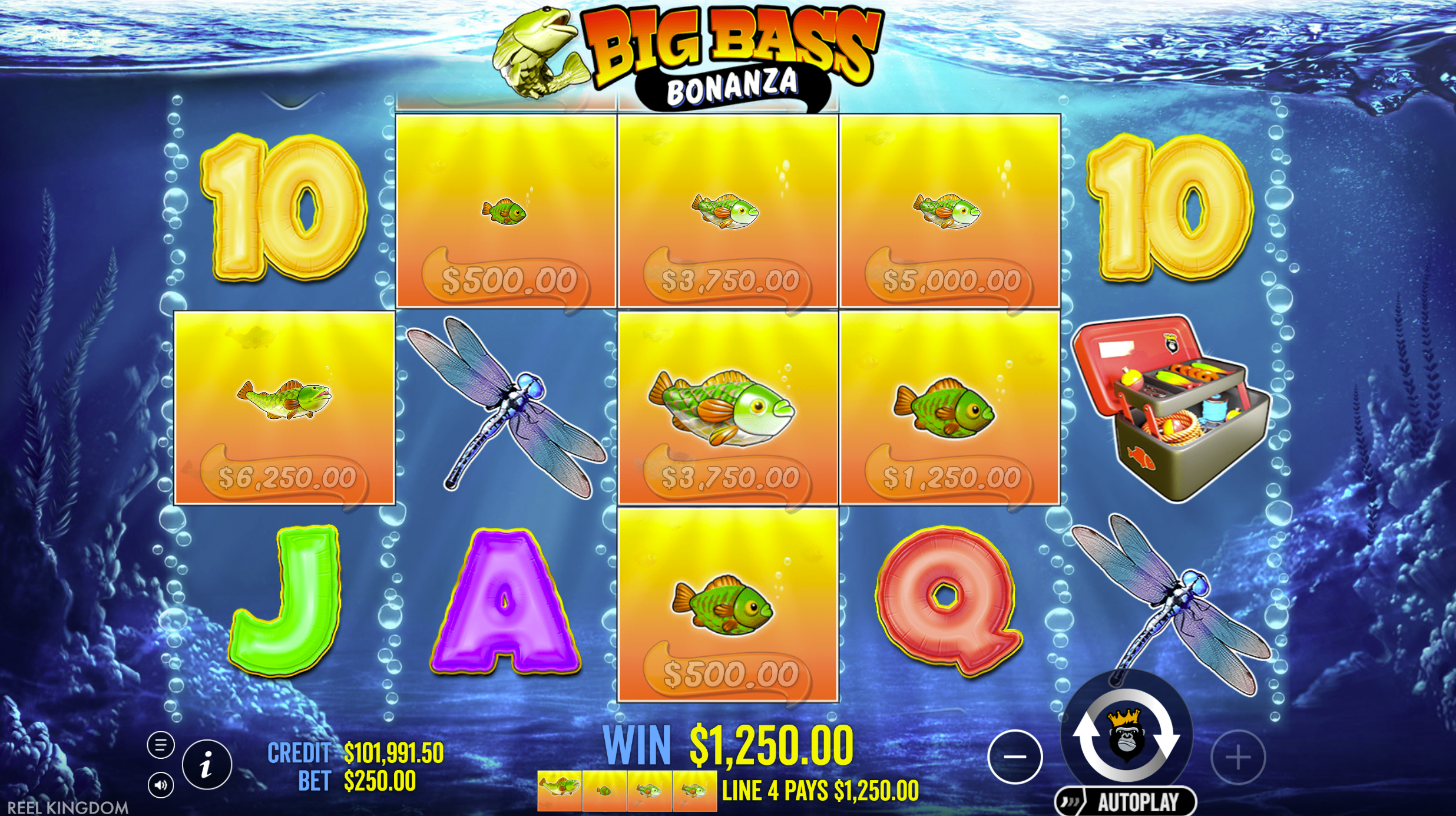 - Money Symbol Collection: Golden fish with cash values collected when Fisherman Wild appears on reel 5