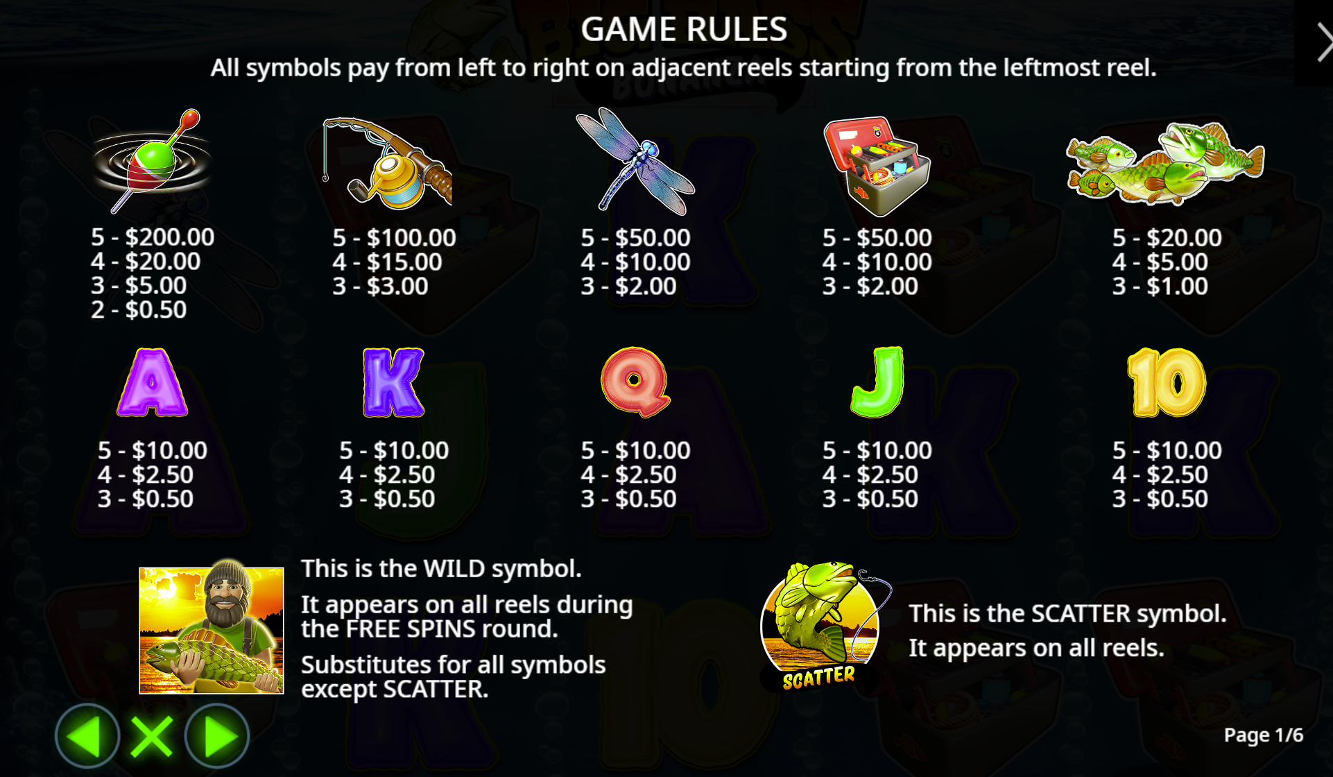 - Casting Wilds Feature: Random base game feature where the fisherman casts wilds onto the reels